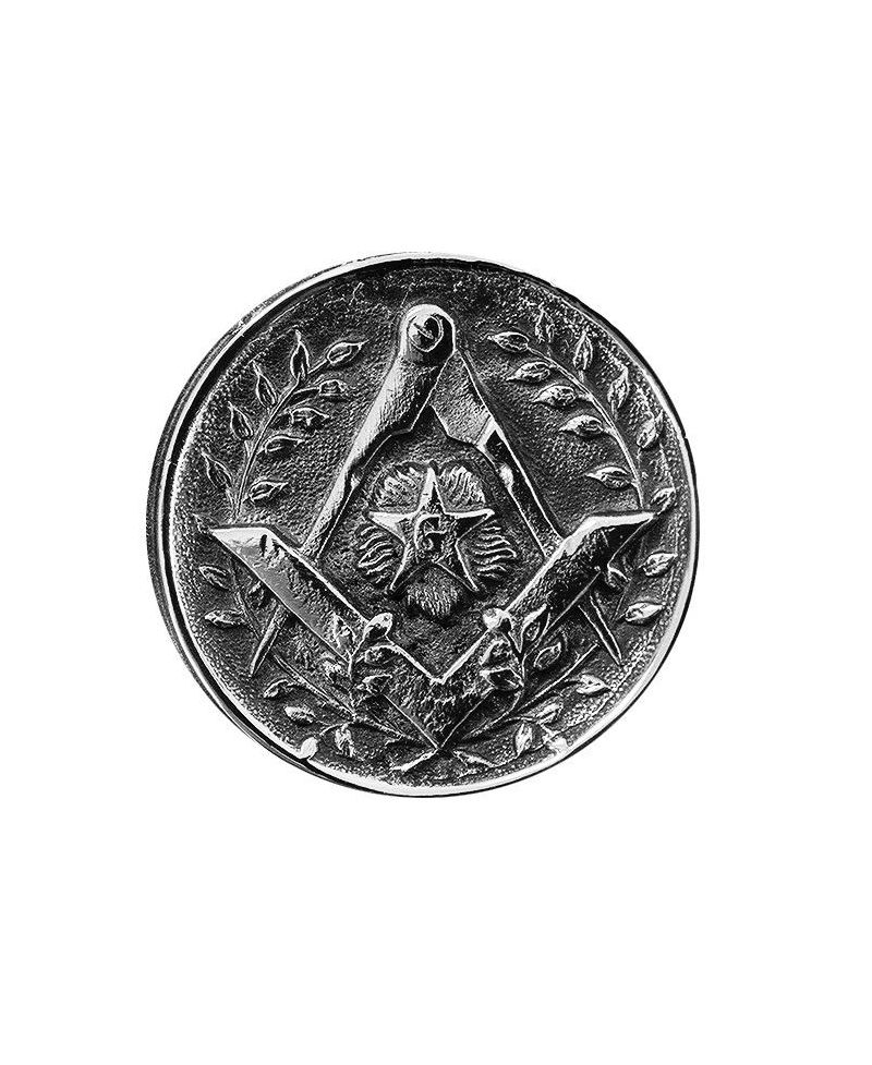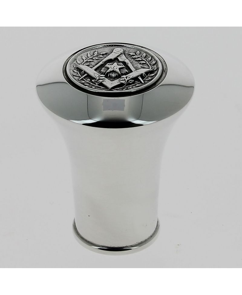 silver plated my knob inlaid with a masonic motif (set square, compasses and flaming star) on a carbon fiber shaft macassar veneer
