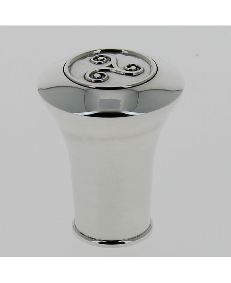 silver plated knob inlaid with a interceltic symbol (Triskell) on a carbon fiber shaft macassar veneer