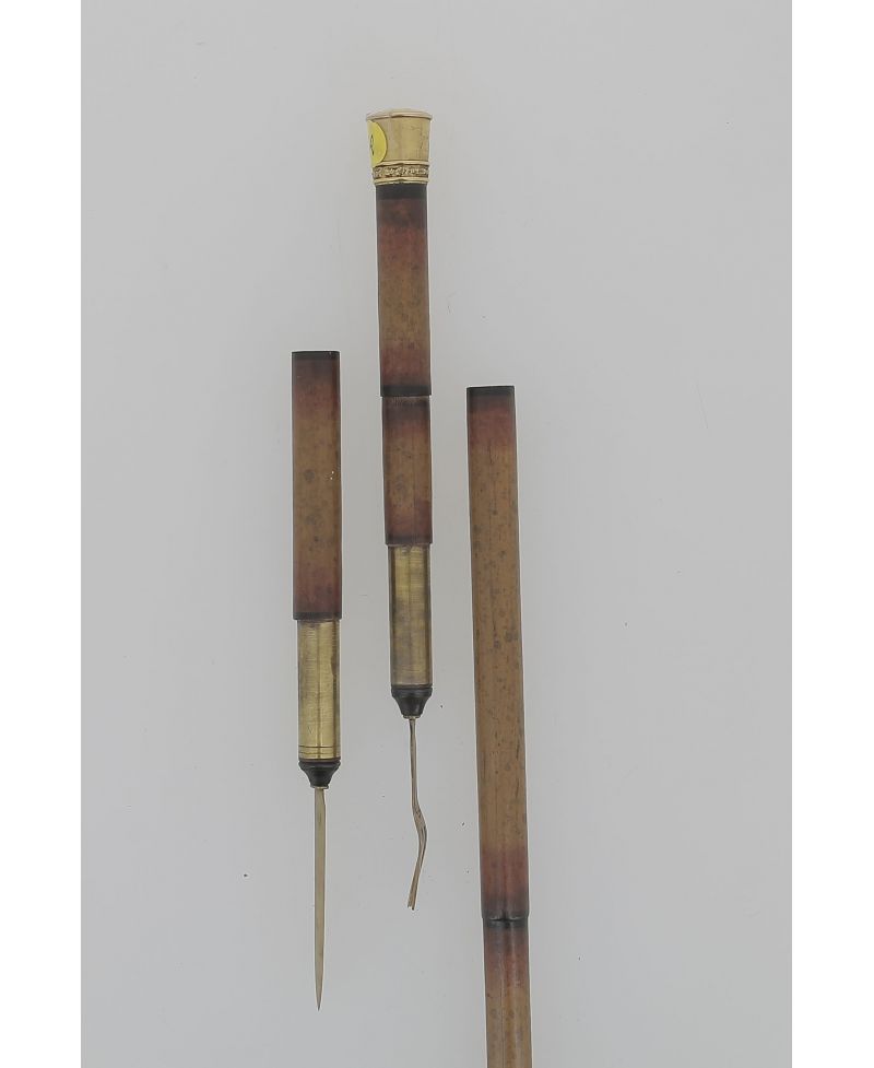 Canne Pique-nique pommeau Or de 1870 avec couteau et fourchette